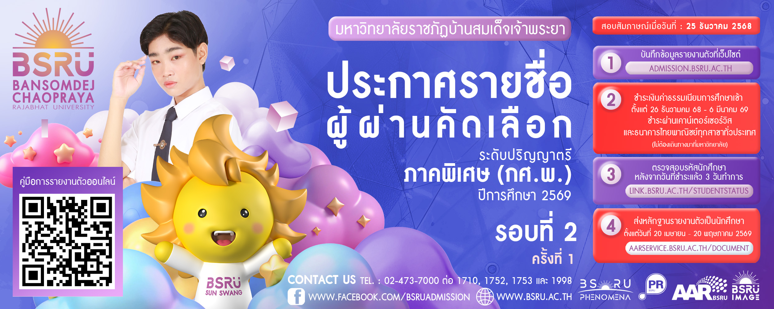 8. กำหนดการรับสมัครนักศึกษา ภาคพิเศษ รอบที่ 2 มหาวิทยาลัยราชภัฏบ้านสมเด็จเจ้าพระยา ปีการศึกษา 2569